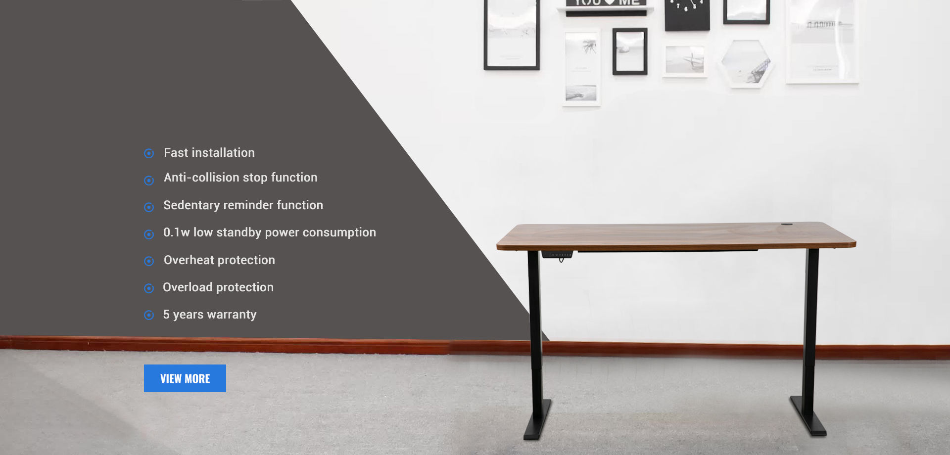 Zhejiang Mindway Intelligent Technology Co., Ltd isSince the birth of the electric lift table, our team has been using and promoting the product, so it is natural for us to design and manufacture our own electric lift table products with what we have learned for many years.
